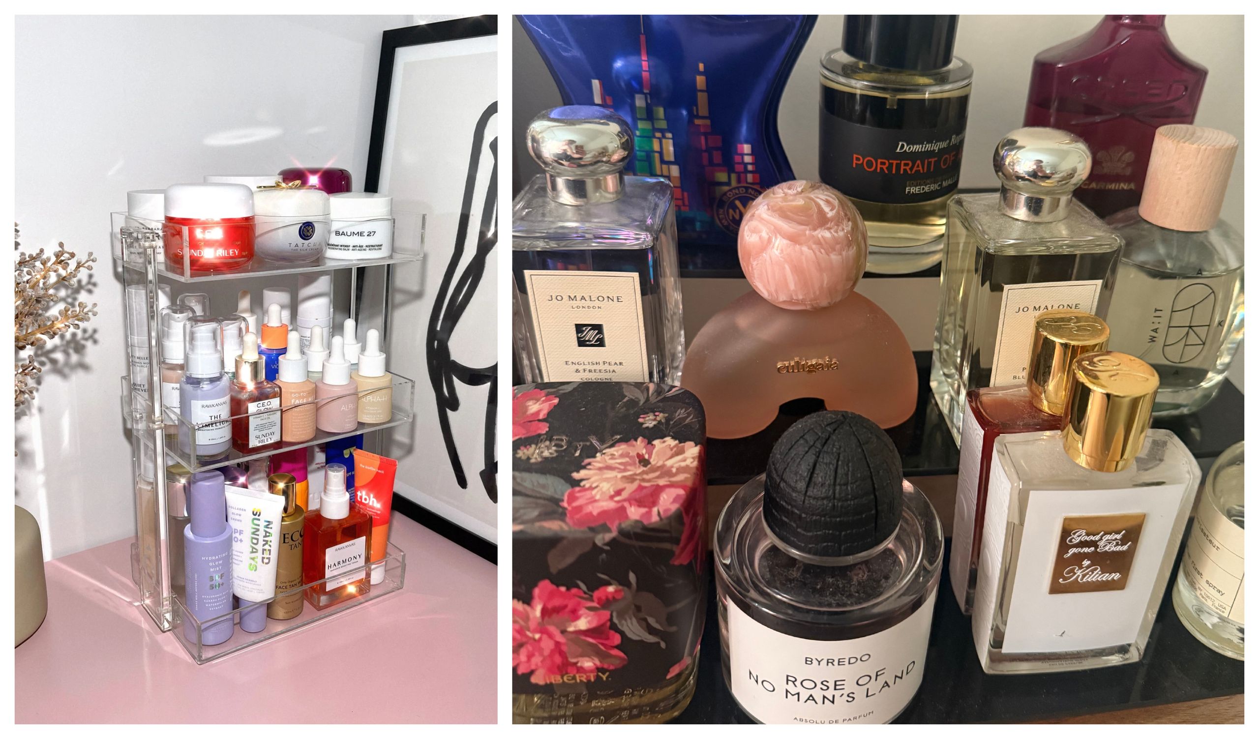 Clear drawers, trays, and perfume towers might not seem exciting, but they’ve made a big difference in my life. Being able to see everything at a glance means I actually use it and know when it’s time to replace it with something new.