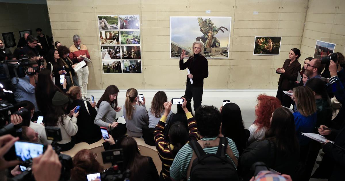 A CoruñaAmerican photographer Annie Leibovitz (Waterbury, Connecticut, 1949) has photographed kings and queens of all kinds, from the Rolling Stones to Queen Elizabeth II of England, the King and Queen of Spain, and the great stars of film, music, and fashion, including Penélope Cruz. Leibovitz herself arrived like a rock star at the exhibition dedicated to her by the Marta Ortega Pérez Foundation (MOP), which runs from this Saturday until May 1, 2026, in its gallery on the Batería dock in the port of A Coruña. Leibovitz is in charge: she moved the dozens of assembled journalists as she pleased and repeatedly asked them to maintain social distancing. She went out of her way to manage the crowd, and in a tense moment with a reporter who wanted to photograph her from below but was prevented from doing so, she sided with the photographer.