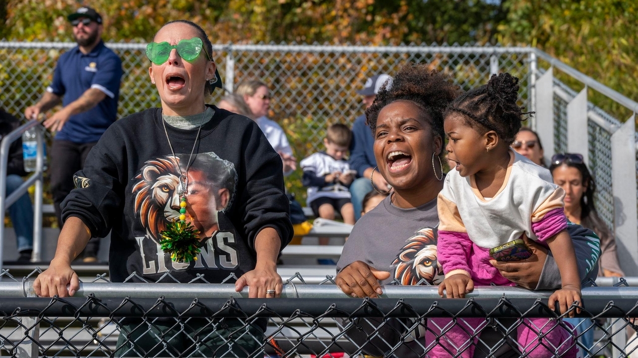 Across Long Island, moms are turning the stands into a sideline runway. At Longwood Lions youth football games in Middle Island, Jaime Carfora, 39, wears a sweatshirt that reads, “I’ll always be your biggest fan,” with her 11-year-old son Joey’s name and number, crafted by a fellow mom.